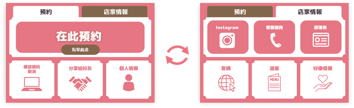 點擊動態選單上方的分頁標籤,就能切換不同動態選單,還能增加按鈕數量